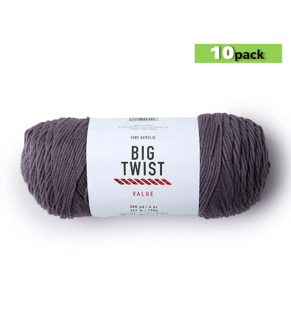 10pk Solid Gray Medium Weight Acrylic 380yd Value Yarn by Big Twist