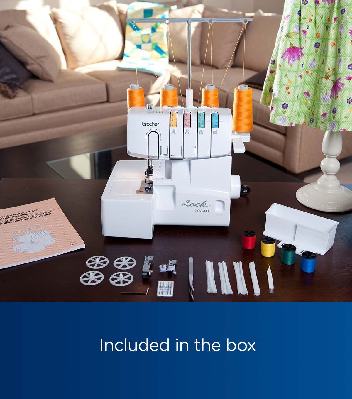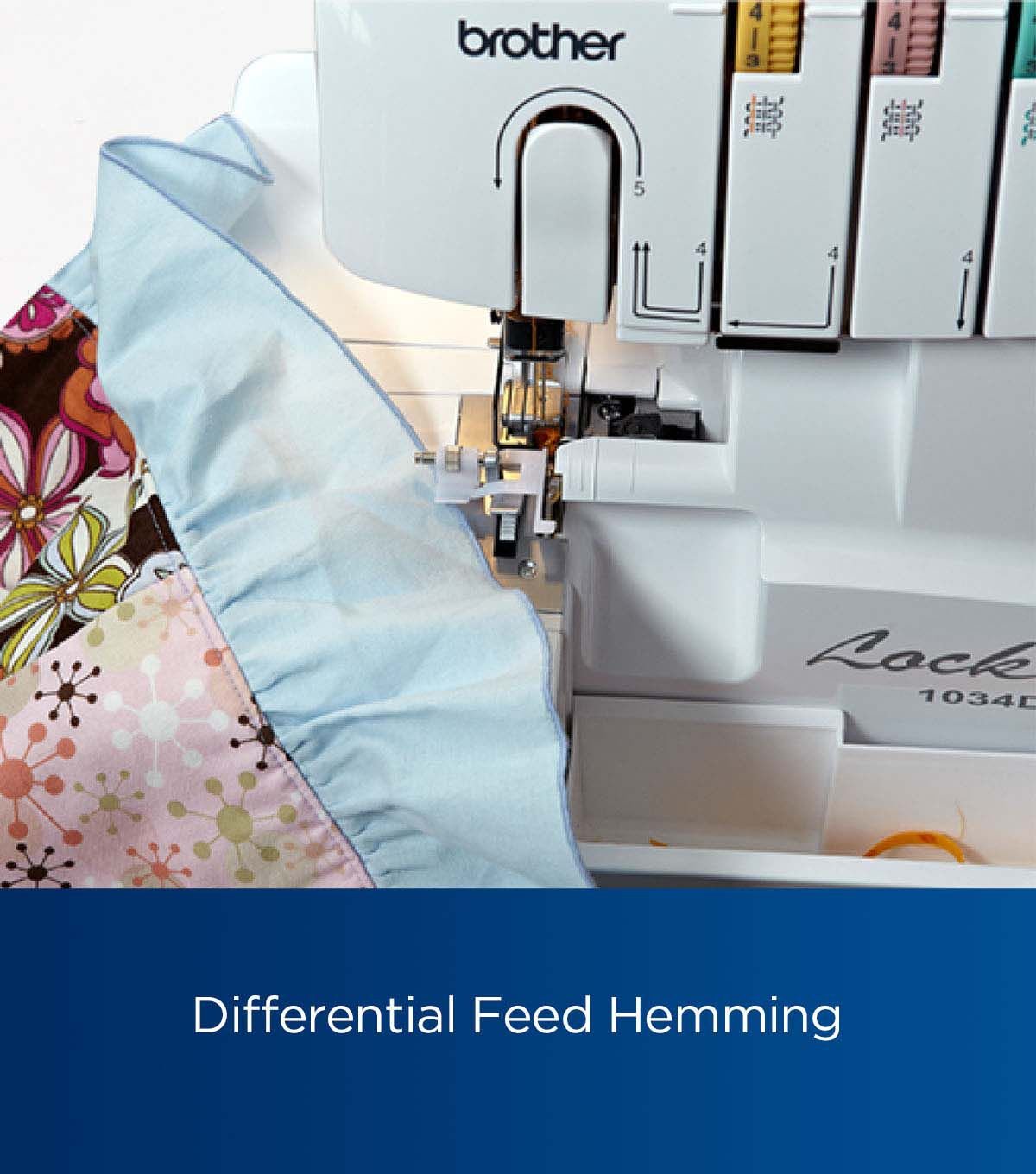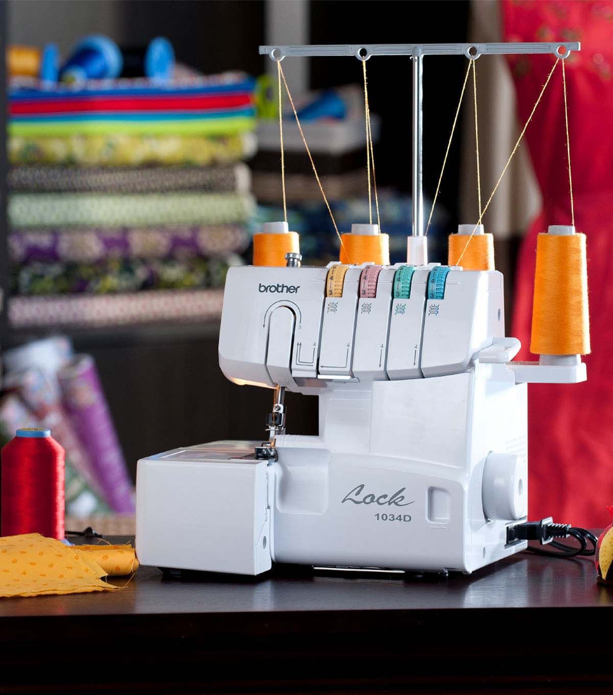 Designed for finishing the edges and hems of a wide range of fabrics, including formal wear, linens and stretchy fabrics, and for creating ruffles and decorative edges, the Brother 1034D Serger is the perfect addition to any sewing room. This reliable, easy to learn and use 3/4 thread Serger features snap-on, interchangeable creative feet. Stitch options include 4 thread overlock, 3 thread overlock, narrow hem, rolled hem, and ribbon lock stitches. With its differential fabric feed, the 1034D helps you achieve better stitch quality, for a more even, professional finish, even on very thin or stretchy fabrics. Threading is easy, with the color-coded upper thread guides and lower looper threading system. Plus, the included snap-on presser feet allow for quick and easy changes to transition to each desired stitch. To help you get started, the 1034D comes completed with a printed English and Spanish operational manual.