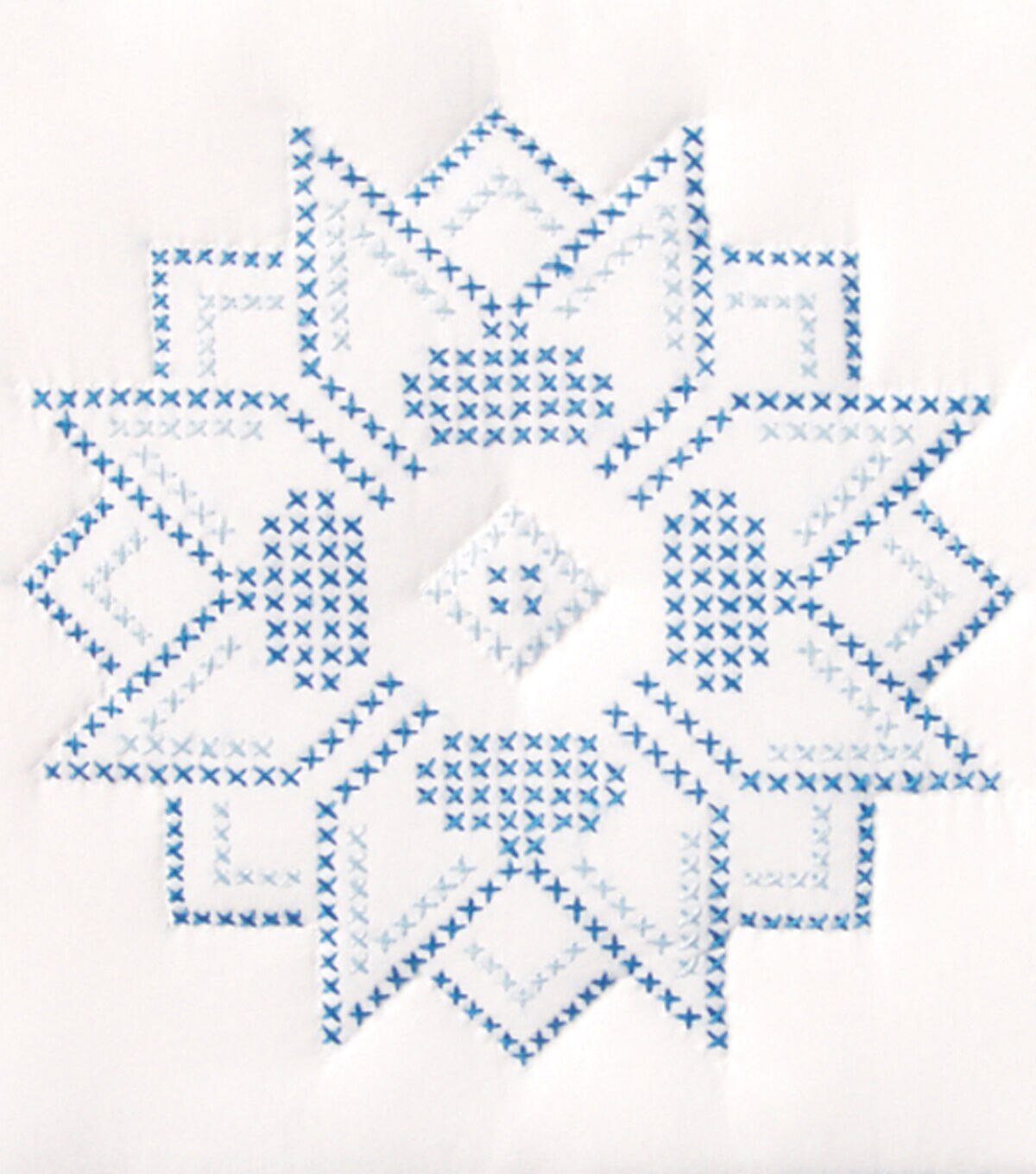 JACK DEMPSEY-Stamped White Quilt Blocks. Create a beautiful quilt top using this great kit. It consists of individual squares to stitch and join together to form a quilt top. The stitching designs have been stamped using ink that washes away with any liquid and the fabric is a cotton/poly blend broadcloth. This package contains twelve 9×9 inch quilt squares, instructions for completion and care and complete list of DMC floss requirements. Fabric, backing, batting, hoop, needle, thread and floss all sold separately. Design: Stars. Made in USA.