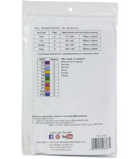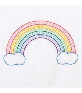 Create a beautiful quilt top using this great kit. It consists of individual squares to stitch and join together to form a quilt top. The stitching designs have been stamped using ink that washes away with any liquid and the fabric is a cotton/poly blend broadcloth. This package contains 12 9×9 inch quilt squares, instructions for completion and care and complete list of DMC floss requirements. Material for stripping, backing, batting, hoop, needle, thread and floss all sold separately. Design: Rainbow. Made in USA.