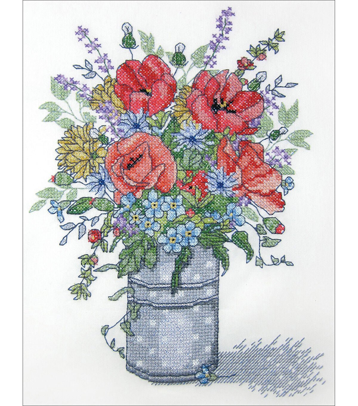 Beautiful designs and top quality materials make Design Works one of the top cross stitch kit makers worldwide. This package contains printed fabric with wash-out ink, embroidery floss, one needle, chart and instructions. Design: Poppies. Finished size: 11×14 inches. Made in USA.