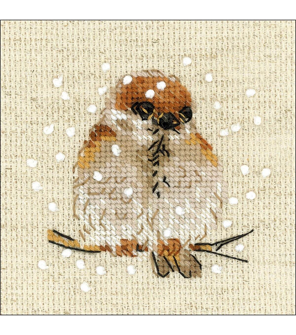 RIOLIS-Counted Cross Stitch Kit. Express your love for arts and crafts with these beautiful cross stitch kits! Find a themed kit for any taste! This package contains 14 count flaxen Zweigart Aida fabric, Safil wool/acrylic yarn in ten colors, one needle, instructions and color chart. Design: Sparrow. Finished Size: 4×4 inches. Imported.